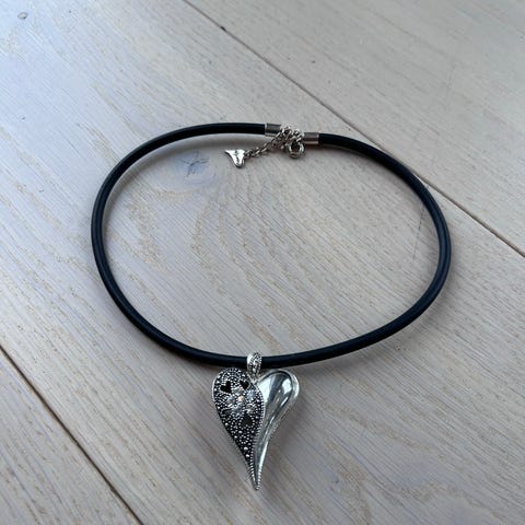 Kjeder er 34 cm langt. Anhenget er 4cmx3cm.