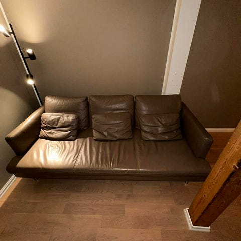 Pent brukt sofa fra ikea, selges billig. Bilde 4: merke fra tidligere hjørnemontering