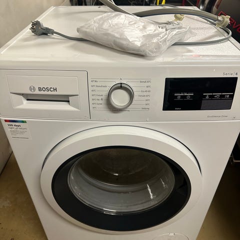 Bosch WAT283T8SN vaskemaskin, frontmatet modell i hvit utførelse. Maskinen har elektronisk betjeningspanel med dreiehjul og display for valg av vaskeprogram og innstillinger. Frontmatet konstruksjon med rund dør i glass og metallramme. Modellen er egnet for vanlig husholdningsbruk og kan brukes til vask av daglig tøy, ull, finvask og andre tekstiltyper i henhold til programmene som er tilgjengelige på maskinen.