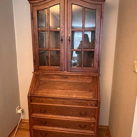Lite søtt vitrineskap med 2 skuffer