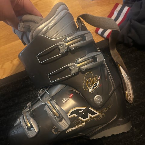 Nordica alpinstøvler i lengde 260-265. Støvlene har fire justerbare spenner i metall og polstret innerstøvel for økt komfort. Sålen har mønster for bedre grep ved gange. Passer til alpint bruk i preparerte bakker.