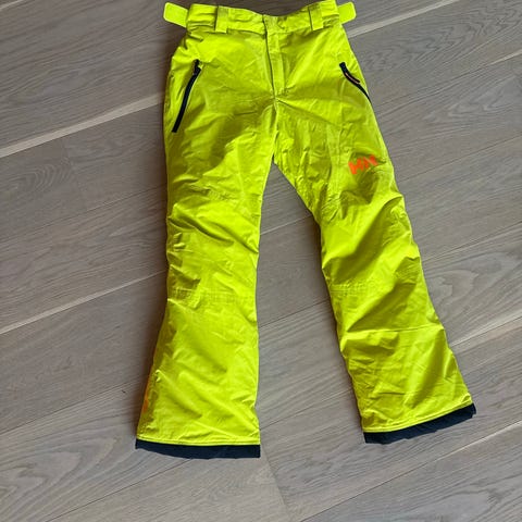 Helly Hansen skibukse i størrelse 176. Buksen er oransje med refleksdetaljer og HH-logo. Laget i slitesterkt materiale tilpasset bruk utendørs.