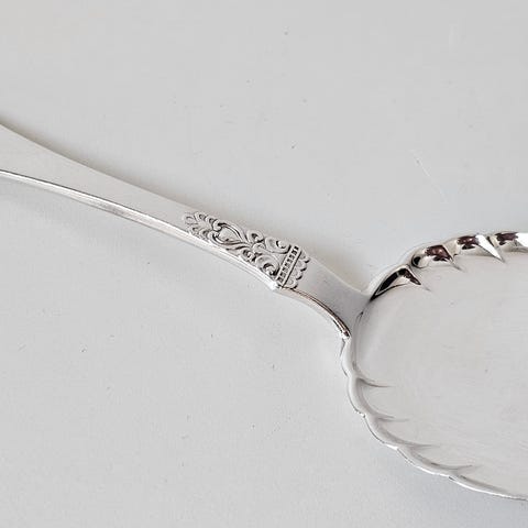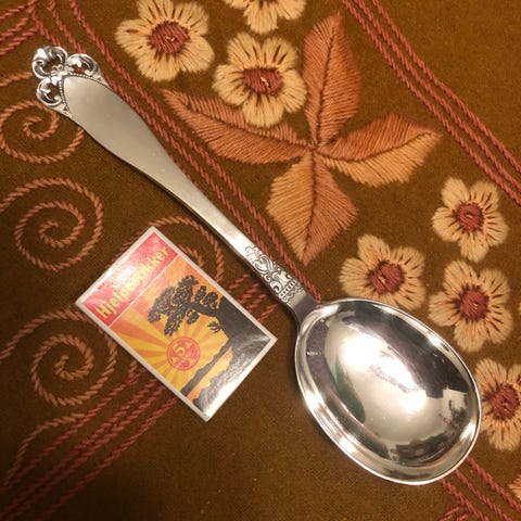 Potetskje i helsølv i serien "Laila" fra brødrene Lohne i Bergen. Laila er et sølvtøymønster i nyrokokko, først produsert i 1935 og populært til nyere tid.