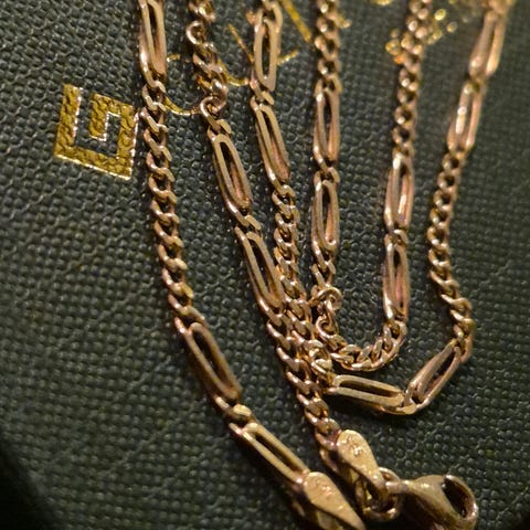 Pent brukt Figaro gullkjede ca. 7mm. Bredt. 55 Cm. Langt.