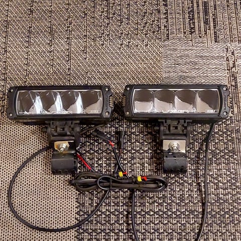 LED ekstralys rektangulære lamper med 6 runde reflektorer i hver lampe og klart frontglass. Lampene har svart hus og leveres med justerbare festebraketter og tilkoblingskabler. Egnet som ekstra fjernlys eller arbeidslys på kjøretøy der slike lamper kan monteres, for eksempel bil, varebil eller andre kjøretøy med passende feste- og strømtilkobling.
