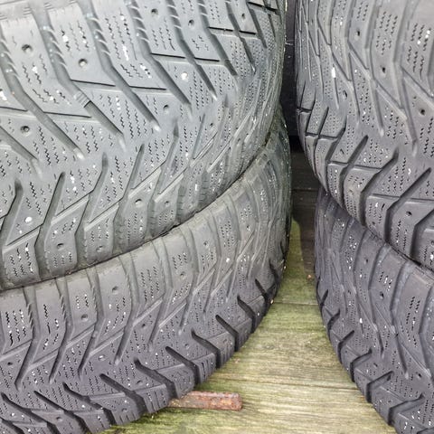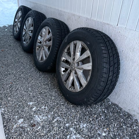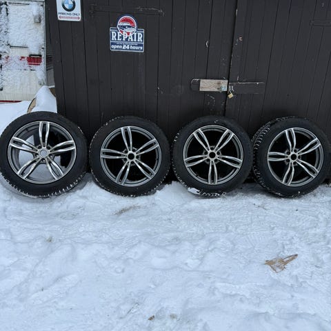 Bra med spor i dekkene, dem er kjørt 1 sesong. Felgene er fine bortsett fra litt kantkjørt. Ett dekk er punktert og må dessverre skiftes.