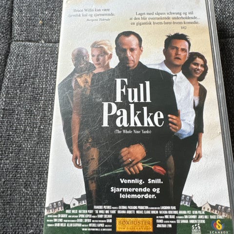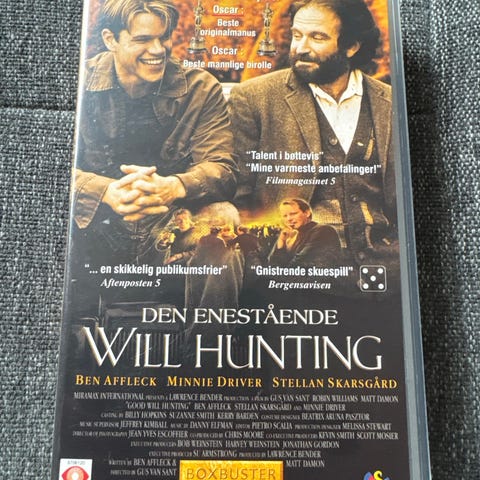 Omslaget inneholder filmomtale, rolleliste og teknisk informasjon på baksiden. Egner seg for samlere av VHS og fysiske filmutgivelser.
