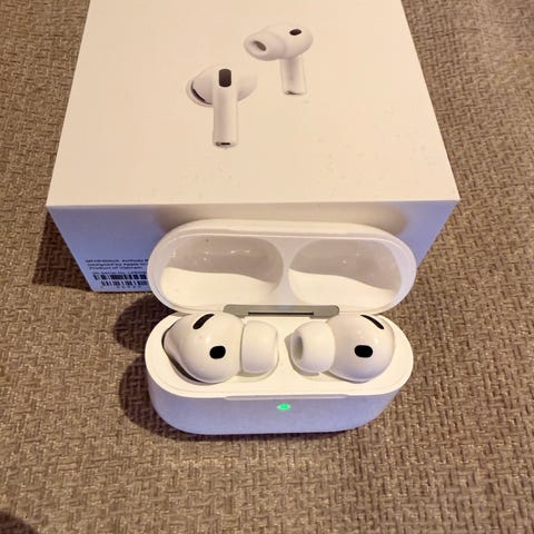 Jeg selger noen AirPods Pro 3 fordi de ikke passer til ørene mine. Varen ble sendt inn på service fordi ladetuiet ikke funka og da bytte de hele casen, så nå er varen helt som ny. Varen er bare brukt 1 gang og alle silikontuppene er kjøpt nye så de er ikke brukt.