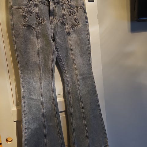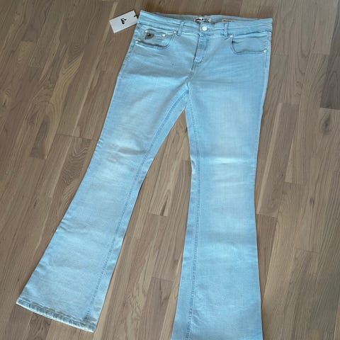 Verdens fineste bukse fra Lee! Den er i str. W26 og L31, men passer W23-27 og L30-32:) Den er i modellen “Leola”, flare/bootcut og lav i livet/low waist, en vintage modell som ikke selges lenger. I den perfekte jeans-fargen, passer til alt og sitter utrolig fint på! Ikke ødelagt noen steder, kun en del av modellen med litt “slitt” utseende:) Klassisk femlommers modell med glidelås og knapp i front, samt belteløkker i linningen.