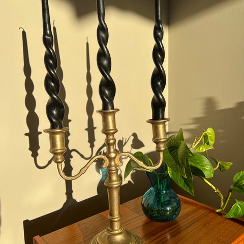 Retro, klassisk, styling, dekor, dekorasjon, stake, messingstake, messinglysestake, interiør, pynt, pyntegjenstand, messingpynt, lysestake
