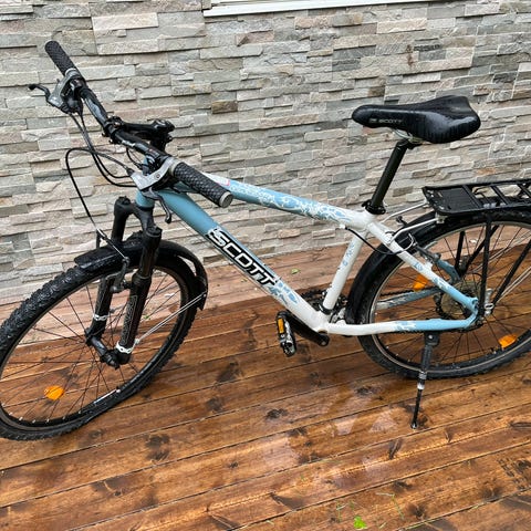 Sykkelen er nylig servet på verksted og fungerer bra. Den har pålitelig Shimano-girsystem (Deore bak) og hydrauliske Shimano-bremser som gir trygg og stabil bremsing. SR Suntour XCR dempegaffel gir god komfort på grus og sti.