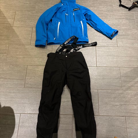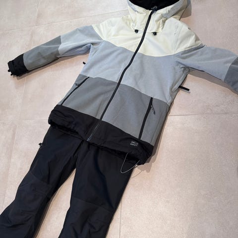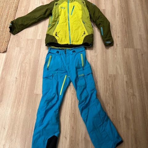 Egnet som alpint- eller snowboardsett, samt annen bruk i snø og vintervær. Knallfine klær med mange lommer og gjennomtenkt norsk design. Nypris ca 5600kr selges for 2500kr. Brukt 1 sesong.