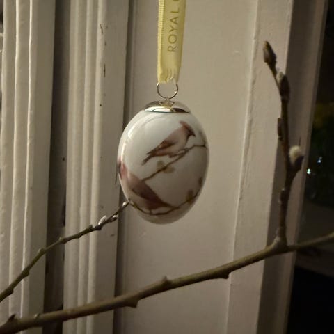 Samleobjekt fra Royal Copenhagen. Blå Iris med lyse grønt silkebånd .6cm .Har ikke esken