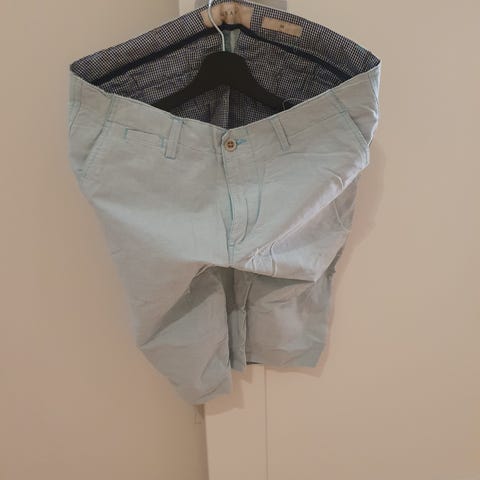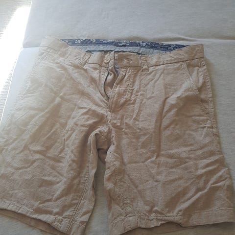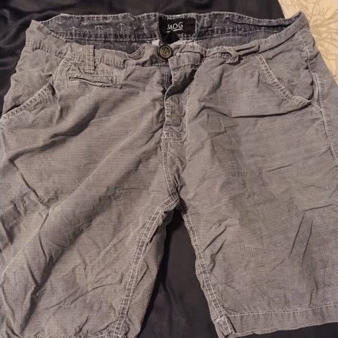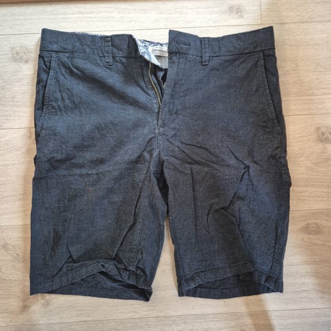 Herreshorts i størrelse M i svart farge med småmønstret design. Shortsen har knapp og glidelåslukking foran, beltehemper i linningen og oppbrettede benkanter. Egnet til hverdagsbruk i varme perioder eller innendørs bruk. Materiale er ikke oppgitt.