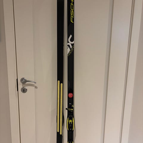 Fischer langrennski og skisko i svart. Bildene viser et par klassiske langrennski med tilhørende Fischer skisko med overtrekk/glidelås foran. Utstyret passer til langrenn på preparerte løyper. Skiene har bindingssystem tilpasset Fischer-skoene som følger med. Fargekombinasjon hovedsakelig svart med lyse detaljer.