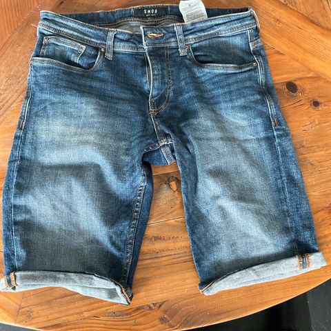 Denimshorts for herre i størrelse M. Shortsen er grå og har snøring i livet samt klassisk 5-lommers design. Egnet til hverdagsbruk i varme perioder.