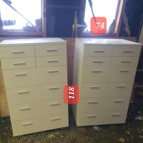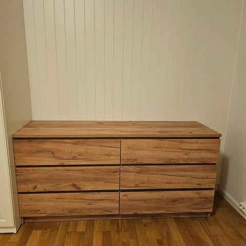 Pent brukt kommode med 6 skuffer. Hvit i front og med bjørk på sidene og på toppen. Må hentes lørdag 28.februar eller 7. mars.