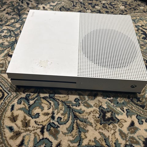 Microsoft Xbox Series S spillkonsoll i hvit farge. Digital konsoll uten diskdrev, beregnet for nedlasting og strømming av spill og medier. Konsollen har blant annet HDMI-utgang, nettverksport og USB-tilkoblinger på bakside, samt USB-port på fremsiden. Medfølgende trådløs kontroller i matchende hvit farge med analoge spaker, styrekryss og funksjonsknapper. Egnet for bruk med kompatible Xbox Series-spill og -tjenester.