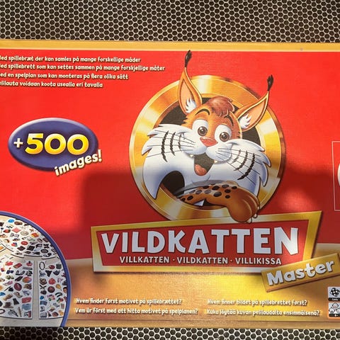 Informasjon: Villkatten Master 500 er et morsomt og populært spill for hele familien, hvor det kreves både overblikk og konsentrasjon. Snu bildekortet og se hvem som raskest finner bildet på spillebrettet! Her får man øvd på både oversikt og konsentrasjon. Den spilleren som finner flest bilder, vinner.