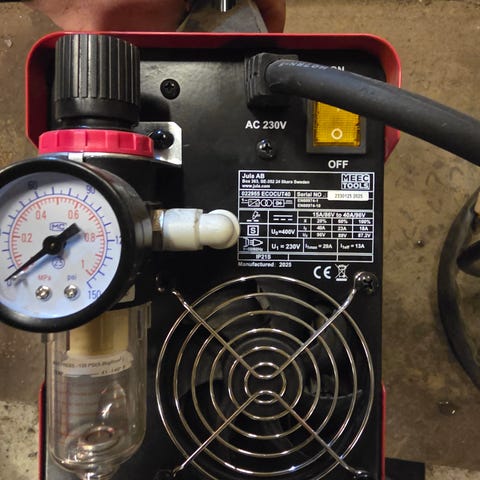 Audi VW Skoda BMW kompressor til dekk. Elektrisk kompressor med manometer for kontroll av lufttrykk i bildekk. Enheten har slange med ventilkobling og tydelig merket trykkmåler. Brukes til å pumpe opp og justere lufttrykk i dekk på kjøretøy som passer med tilkoblingen, for eksempel personbiler fra Audi, Volkswagen, Skoda og BMW. Kompressoren har illustrerte bruksanvisninger på toppen av enheten.