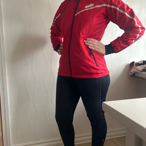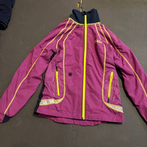 Swix treningsjakke i svart med rosa glidelåser og sømmer. Jakken har hel glidelås i front, brystlomme med glidelås og to sidelommer med glidelås. Den er utformet for aktivitet utendørs, med paneler som gir bevegelsesfrihet og lett, funksjonelt materiale. Passer til trening som løping, langrenn eller annen utendørsaktivitet i kjølig vær.