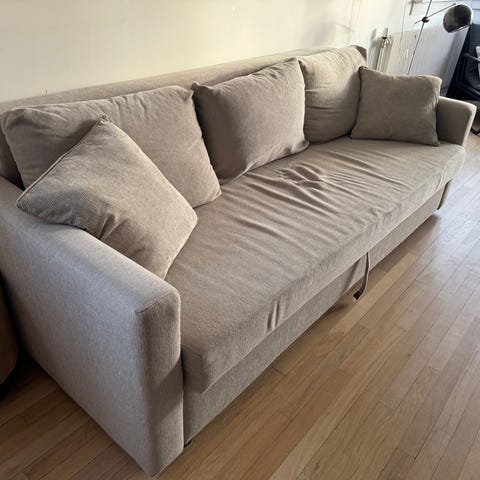 Selger en 2-seter sovesofa i fargen Gunnared beige fra IKEA kjøpt for ca. 1 år siden (nypris ca. 10 000 kr)