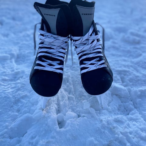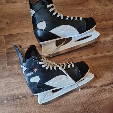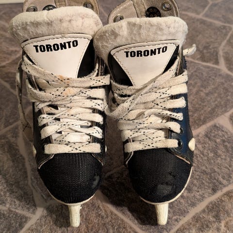 Toronto ishockeyskøyter i størrelse 40. Modellen er klassiske ishockeyskøyter i svart og hvit farge med snøring og polstret pløse. Skøytene har stålklinge og høy ankelstøtte som gir stabilitet på isen. Egnet til ishockey og generell bruk på is for voksne eller ungdom som passer størrelse 40.