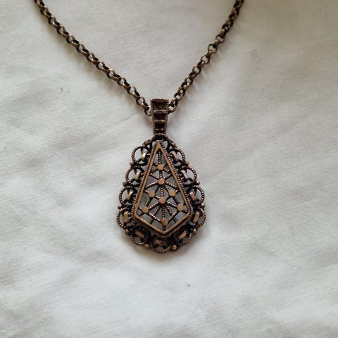 Kjede: Originalt kjede i bronse medfølger. 35 cm til anheng, se bilde med målebånd.