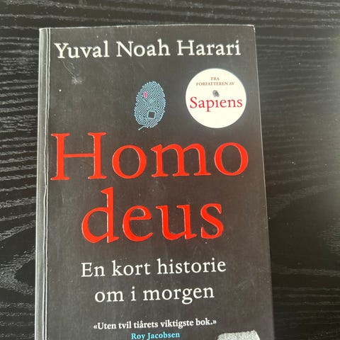 Yuval Noah Harari Homo deus bok. Sakprosabok med undertittelen «En kort historie om i morgen». Boken tar for seg mulige framtidsscenarier for menneskeheten og bygger videre på temaer fra «Sapiens». Innbundet utgave på norsk.