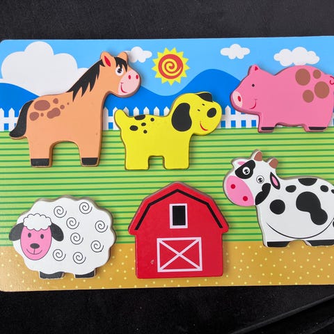L239. TrePuslespill Bondegårdsdyr – 6 brikker m store knotter. Kidswood. Pent brukt. 85kr