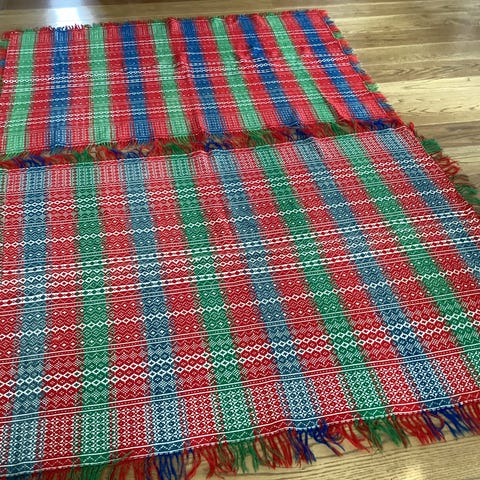To gamle vimpler / flagg med norske flagget. Fullstendig slitte, men kanskje noen vil ha dem for stoffet? Eller som rekvisitt, til teater, demo, kunst, installasjoner osv?