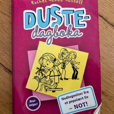 Rachel Renée Russell Dustedagboka 7 bok. Innbundet barne- og ungdomsbok på norsk med illustrasjoner i svart-hvitt. Boken er en del av serien Dustedagboka og følger hovedpersonen Nikki i dagbokform. Passer for lesere som liker humoristiske historier med tegninger og tekst kombinert. Pris kan diskuteres.