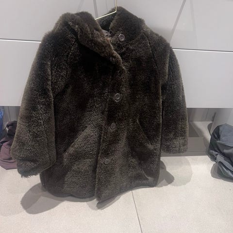 Nydelig kåpe med pelskrage str 128 selges.