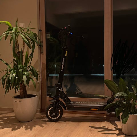 Elektrisk sparkesykkel med integrerte LED-lys. Bildene viser rød og flerfarget belysning foran og under fotbrettet, som kan gi bedre synlighet i mørket. Sparkesykkelen har styre med håndtak, fotbrett og støtte. Egnet til persontransport på kortere strekninger der elektriske sparkesykler er tillatt. Ytterligere tekniske spesifikasjoner som rekkevidde, motoreffekt, batterikapasitet og maksimal hastighet er ikke oppgitt av selger. Den har helt ny bakmottor å bakmottor kontroller det eneste som er feil med den er at frem mottor ikke funker du får med masse Extra deller på kjøpe/traden som foreksempel hurtilader et extra parr med bak og frem dempere å N7 kontroller A og B og en del mere den nye mottoren er usperret som får den til å dra 50-60kmt. Pris/trade kan diskuteres