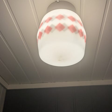 Lampen er brukt og har normal slitasje i forhold til alder, men fremstår som hel og pen. Alle glasskålene følger med.