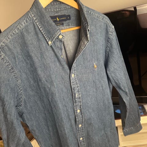 Selger en nydelig Denim skjorte fra Ralph Lauren i størrelse L, og passform slim fit. Ingen bruksmerker. Send meg en melding om du lurer på noe ☺️