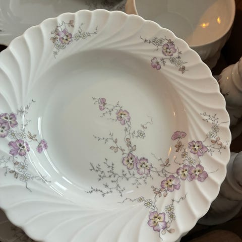 Diverse servise fra Porsgrunn fra det jeg tror er serien Bogstad "Maud". Det har gullkant.