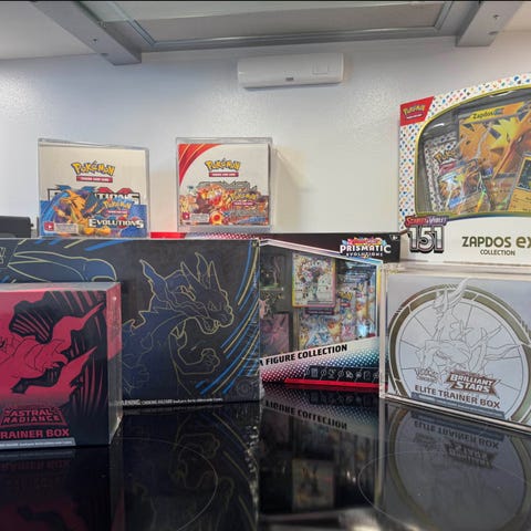 Pokémon blandet lot med ulike bb, bokser og boosterpakker. Inneholder flere typer produkter fra Pokémon TCG.