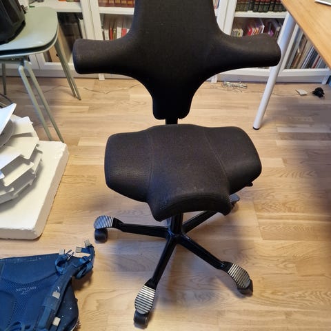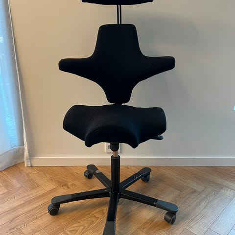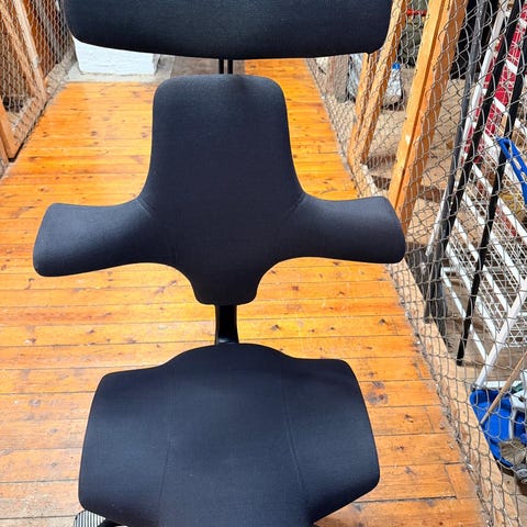 HÅG Capisco 8106 ergonomisk kontorstol i helsvart til salgs. Stolen er i meget god stand og fungerer som den skal. Ingen rifter eller skader på stoffet.