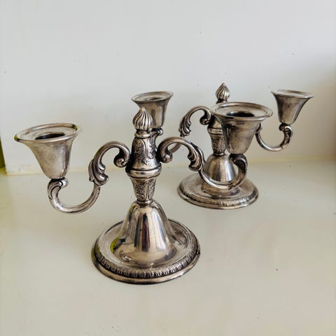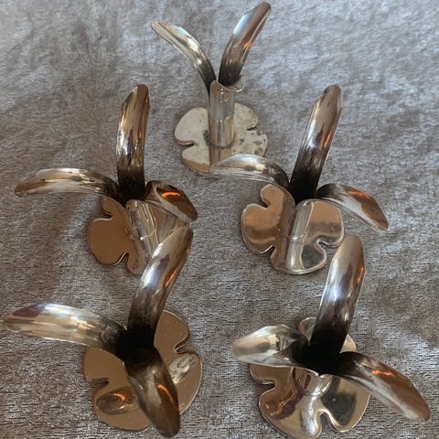 4 stk VINTAGE lysestaker LILJE Design. Ivar Ålenius Bjørk for Ystad metall..40 gr sølv