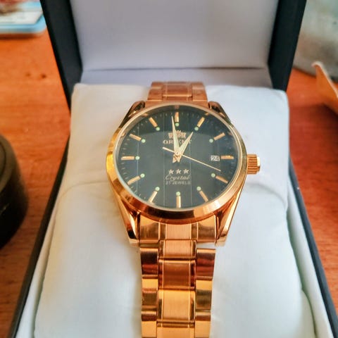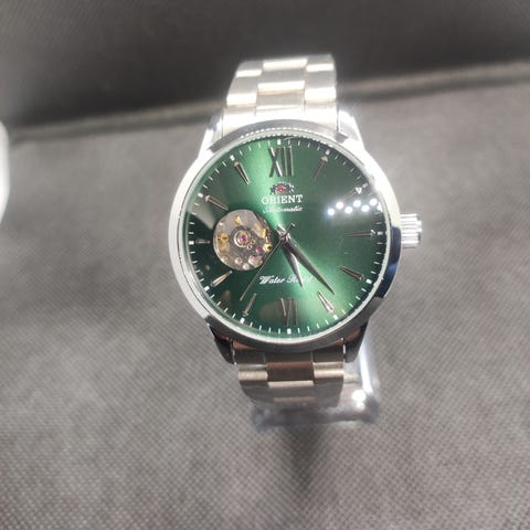 Vakker Orient automatisk klokke med grønn urskive og en diameter på 41 mm