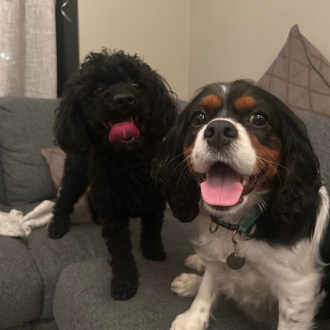 Milo og Emmie er meget gode familehunder. Kjent for å elske kos, ligge på fanget, leke og ha det gøy! Emmie bor sammen med en annen tispe, to katter og seks barn. Milo har vokst opp i en småbarnsfamile med en tispe. Ingen av hundene har allergier eller annen hudproblematikk.