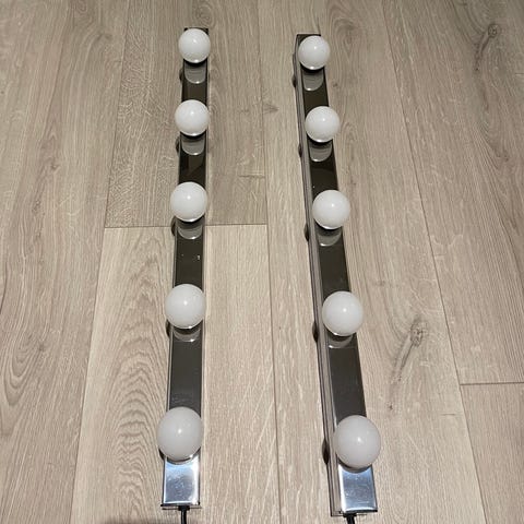 IKEA lampe i metall. Som et halskjede med små perler lyser denne vegglampa opp området rundt speilet på soverommet eller i entreen med et kraftig, spredt lys. Like fint når du akkurat har stått opp som når du kommer hjem om kvelden.