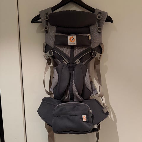 Bæresele, og bæresjal til nyfødt fre ergobaby. Bæresjalet har enkel forklaring på hvordan man knyter det på innsiden av «posen» som er en del av sjalet.