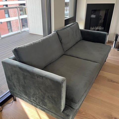 Meget pent brukt 3-seter + 2 stoler i mørk grå fløyel.