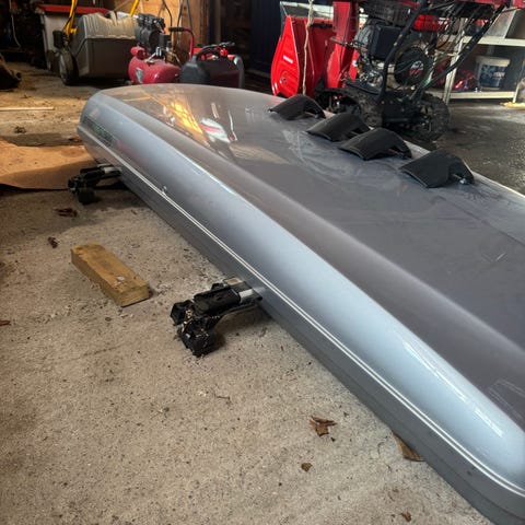 Skiguard 860 takboks i svart plast. Lavtbyggende. Sittet på Porsche Taycan Cross tourismo. 4 år gammel, men kun brukt 2 år