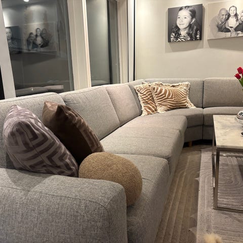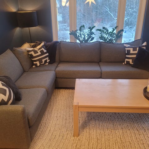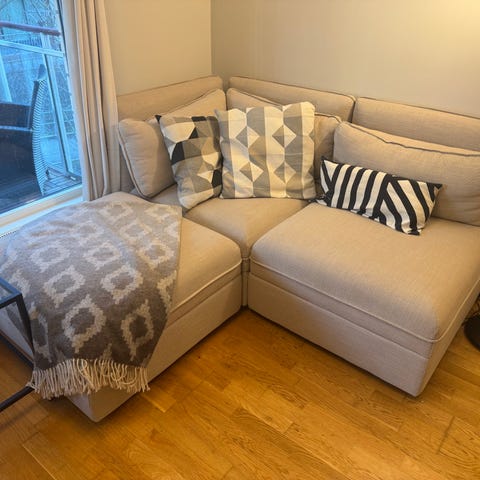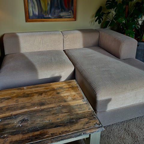 Hjørne sofa i mørkt beige stoff - fullt brukbar