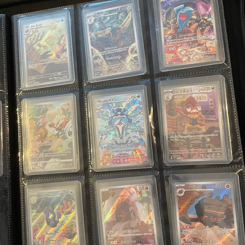 Kortene er fra diverse sett fra scarlet & violet (bla 151, prismatic evolutions, journey together), Mega Evolution og noe sword & Shield.
