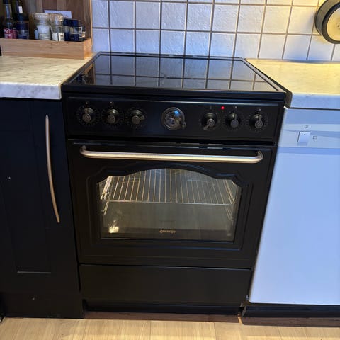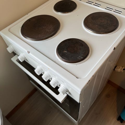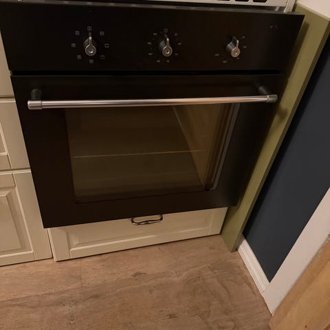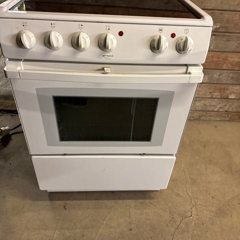 Stekeovnsdøren har en skade, men vi har likevel kunnet bruke ovnen...