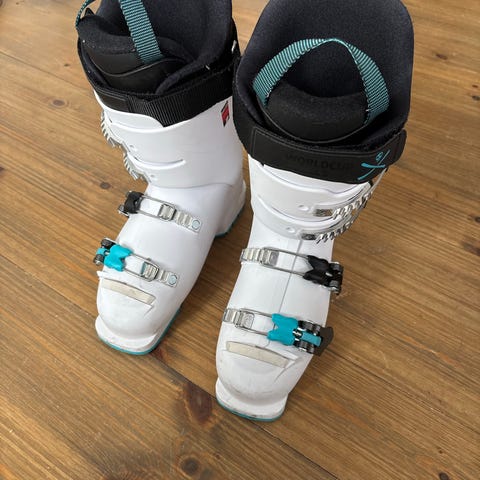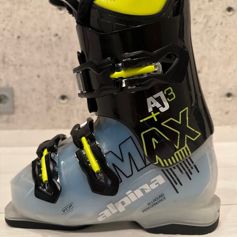 Støvlene er svarte med hvite og neongule spenner. Modellen har fire justerbare spenner og power strap øverst for bedre tilpasning rundt leggen. Sålen er merket med størrelsen 27.0/27.5. Dette tilsvarer størrelse 42-42.5.